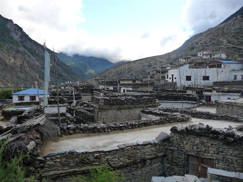 The first day was very difficult. An 18km walk with a 400m climb at the end. Within 10 minutes we had our first glimpse of snow capped mountains. Everything was going great until we came across a landslide blocking the path. The resulting 1.5hr detour in blazing heat really took it out of me in particular and made the final climb to Bahundanda very hard indeed. Over the next few days landslides were very common, but luckily the locals are very adept at creating new paths. Unfortunately though, they sometimes forget we don’t all live in the mountains, so some of the detours are very steep and tough. On around day 4 the scenery started to change dramatically. Trees started to change to pine and the rice fields disappeared. The views from Chame to Manang were absolutely stunning. The Oble Dome in particular made us pause in awe.
