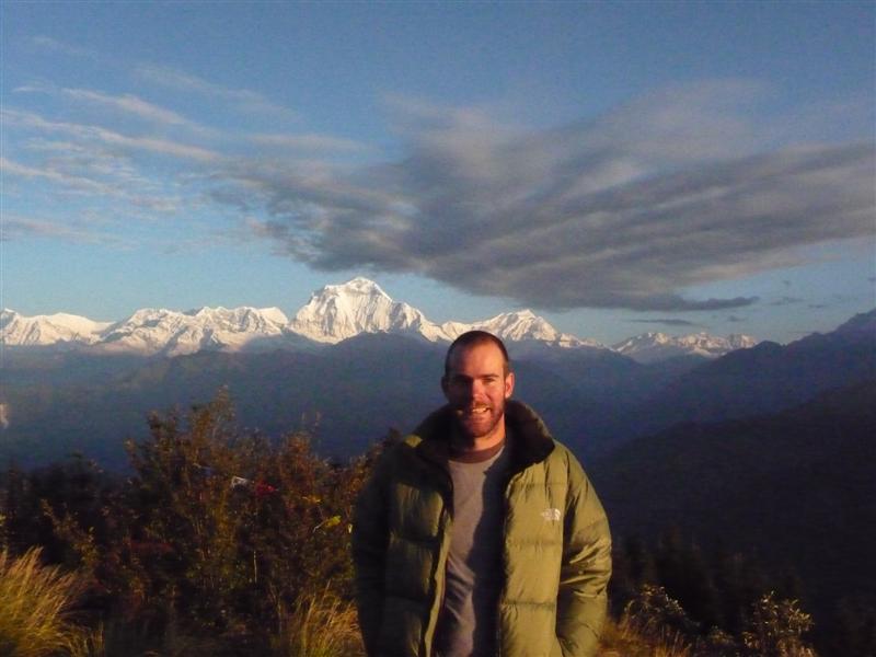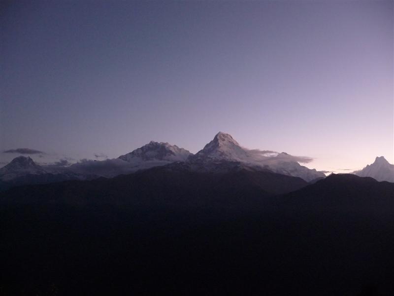 The next 2 days were spent heading towards Jomsom, the biggest town on the trek. Thankfully the clouds cleared on the second day and we were treated to great views of the arid landscape. We stayed in Kagbeni and Marpha, which is a very pretty village with traditional houses who’s roofs are covered in firewood. Rach picked up some brandy for her grandad at the local distillery. The last section of the trek took a southern direction towards the final village of Birethani. Days 14 and 15 were in my opinion the hardest of the trek. A 24km leg followed by a 1.6km ascent the next day. We were both feeling very tired at this point, so the going was pretty slow and involved lots of water stops. We spent the night of day 15 in Ghorepani. A further 300m higher up is Poon Hill, which has great views of the entire Annapurna Sanctuary. I was up at 4.30am to watch the sunrise over the mountains, along with around 150 other people.
